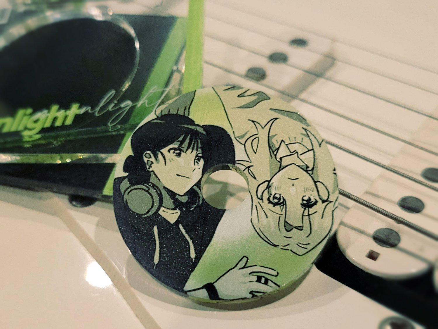 Layered CD Charm of the Main Couple of KiniOto or "Green Yuri"; MitsuAya from "The Guy She Was Interested In Wasn't a Guy at All"! Double sided printing with songs from Mitsuki's playlist on the back.